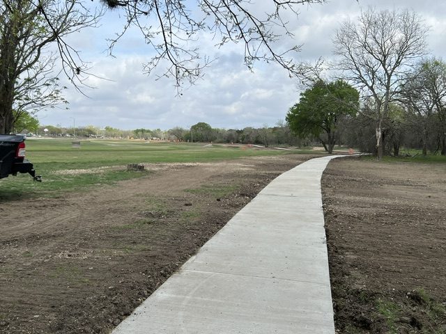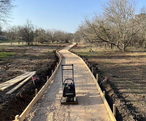 3,000 Linear Feet at 80 Day Total Cure. Soil Tracking Raked, and Sidewalk Edges Filled in with Native Soil.